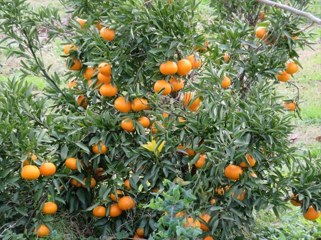 この辺りは柿やみかんが採れる場所で、いずれも収穫期を過ぎているのですが、まだ実を付けたままのみかんの木を所々に見かけます。