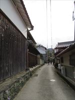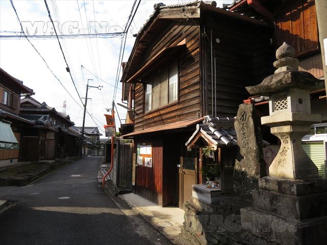 路地の左右には木造瓦葺きの建物が並び、常夜灯の石灯篭も残っています。