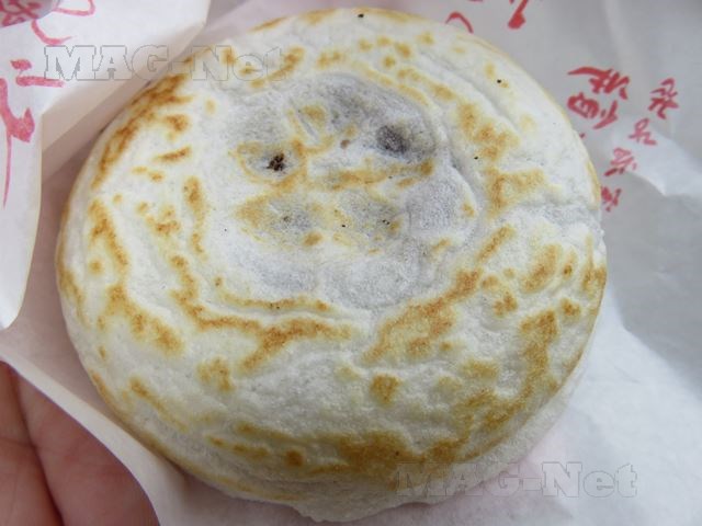 熱々の焼餅「梅ヶ枝餅」の中からは噛めば甘いあんこが出てき、絶妙の味です。