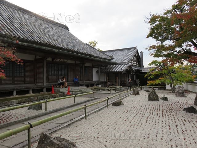 門を入り右手に寺へと続く敷石があるのですが、その左側が寺院、そして右は白石を敷き詰めた石庭です。