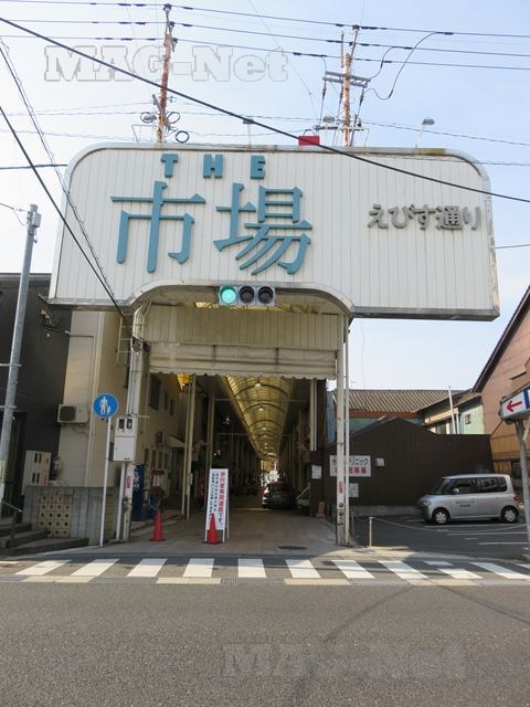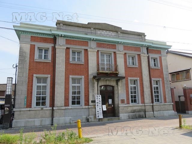 商店街を進み、屋根が切れた先に「旧百三十銀行」の建物があります。