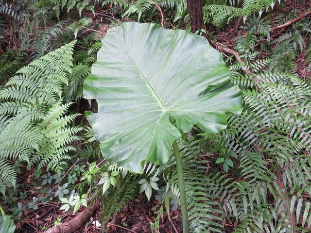「となりのトトロ」ご愛用の大きな葉をもつ「クワズイモ」も、至る所に生息しています。