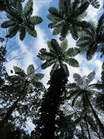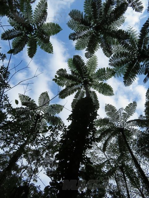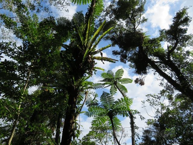 空を見上げるとヘゴの葉の隙間から陽が差してきます。