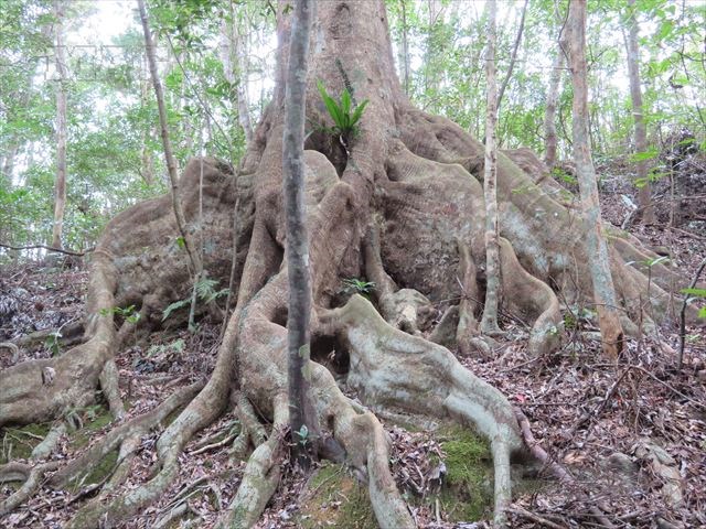 カシの木ですが、根元が板状になる板根を見ることができます。