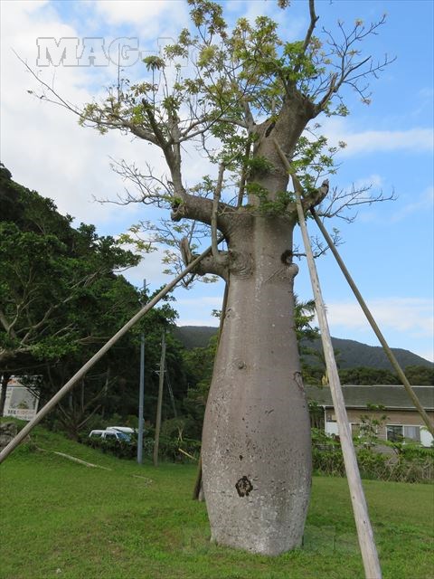駐車場の入口にある太い木は、ひょっとしてバオバブでしょうか。
