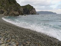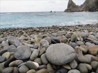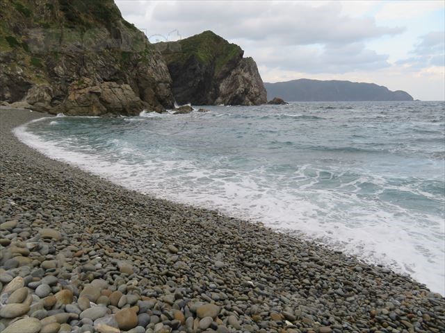 波間に転がり角が取れた石ばかりの海岸なのです。