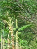 花と実が一度につくのは、今年の台風のせいかな?と盛んにガイドが言っています。