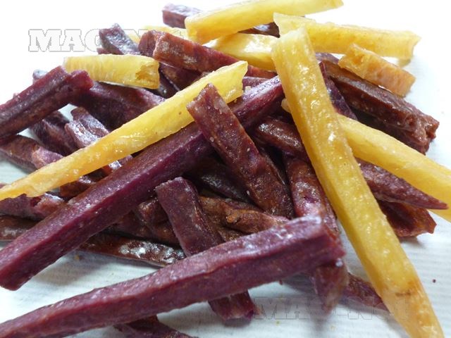 山芋と米の粉から作られるスポンジ状の白い饅頭の中には、あんこが入っています。