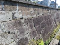 裁判所が見える辺りでは、左手に石垣が続きます。
