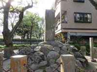 その中には石を積み上げたような場所があり、その中央に石碑が立っています。