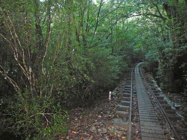 このトロッコは間伐した枝やそのための資材を運ぶためのもので、めったに出くわすことはありません。