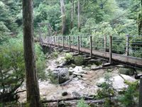 木々が生い茂り、出会った川には苔むしる石が転がっている中を、ひたすら歩きます。