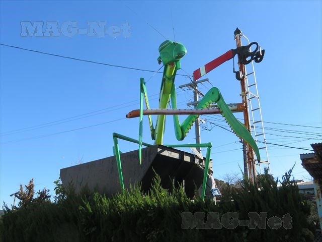 また駅には巨大なカマキリのオブジェがあります。