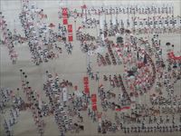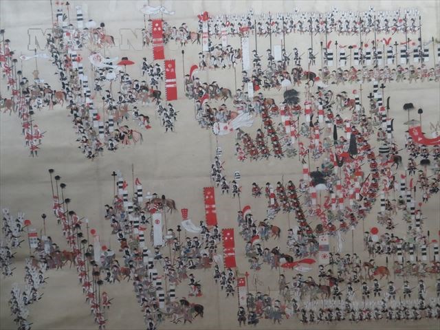 中には18世紀の出島の様子を鳥瞰的に描いた長崎日蘭貿易絵巻や、17世紀ごろ長崎に来航した異国船を描いた異国船絵巻、そして島原の乱の陣営図を描いた原城攻囲陣営並城中図など、その時代時代を描写したものが保管されています。