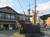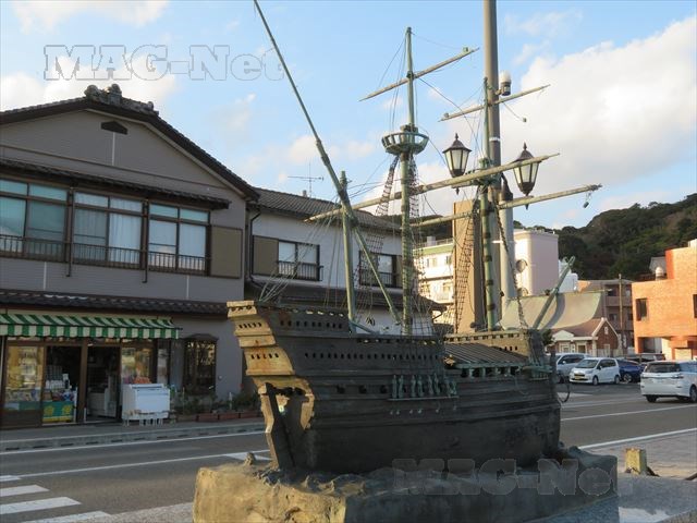 そこには「ポルトガル船入港碑」があり、南蛮船の模型が飾られています。