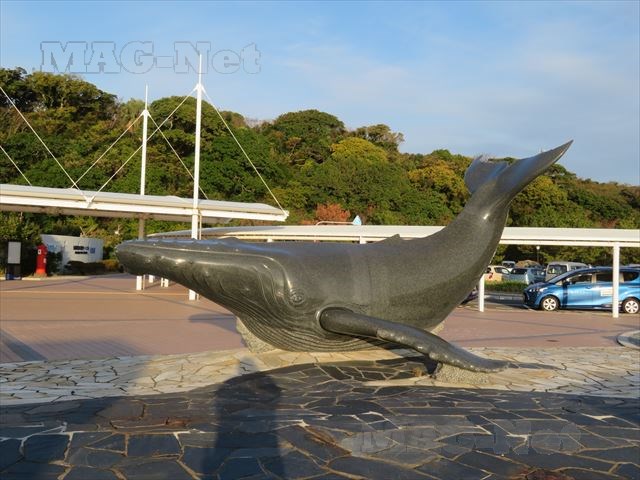 外に出ても石で掘られた鯨のオブジェが建っています。