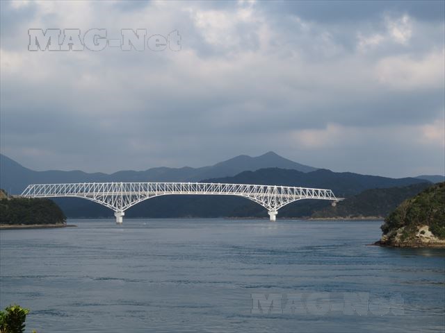「若松大橋」で若松島も中通島とつながっており、車で行くことができます。