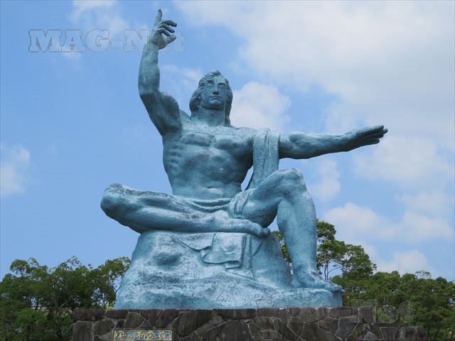 その先は広場になっており、その一番遠いところには男性が右手を天に左手を左水平に差し出す有名な「平和祈念像」があります。