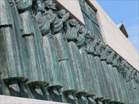 建物正面には殉教した26名のモチーフが飾られています。