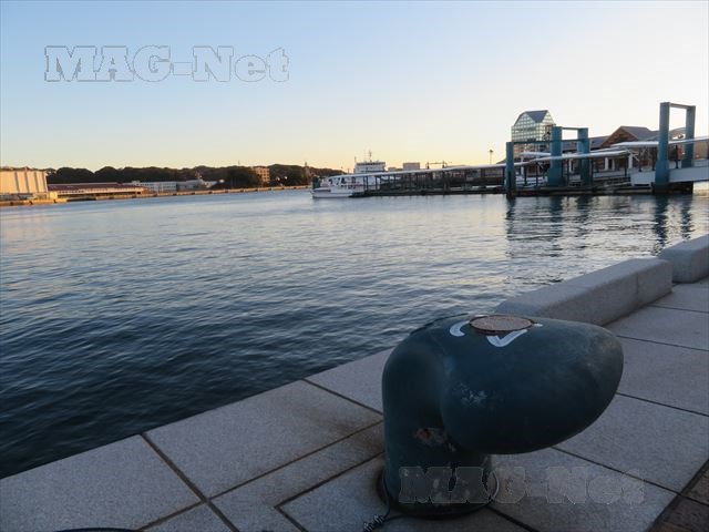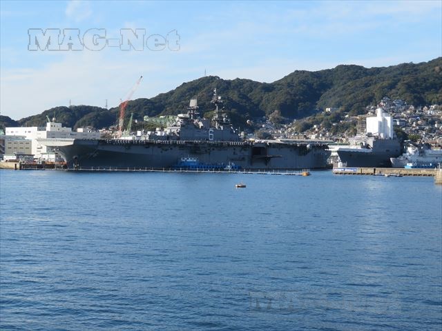 また右手のフェリー乗り場の奥には、米軍の艦隊が頭を出しています。