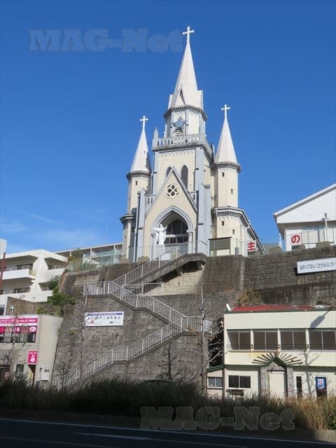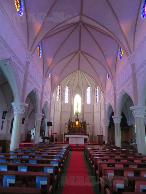 白っぽい壁の教会ですが、太平洋戦争の時には攻撃の目標にならないために黒く塗られたこともあったということです。