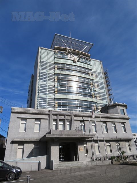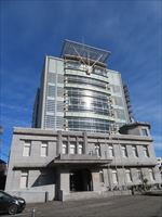 歩いていると途中に左手に斬新な形の建物が見えます。