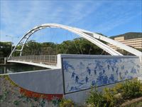 弓型をした橋は、新佐世保川に架かる「アルバカーキ橋」です。