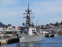 これから乗る五島列島行きの船が艦船の前を横切って行くので、その瞬間が見学のチャンスです。