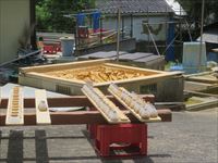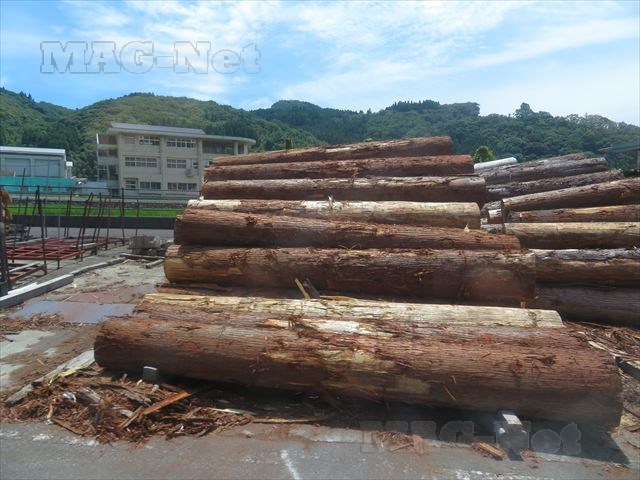 切り出した木を並べた木材加工の工場が目につきます。