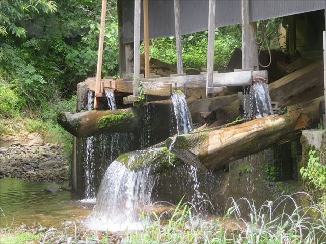音のする方向に足を進めてみると、小屋の前に水が流れ何かを動かしています。