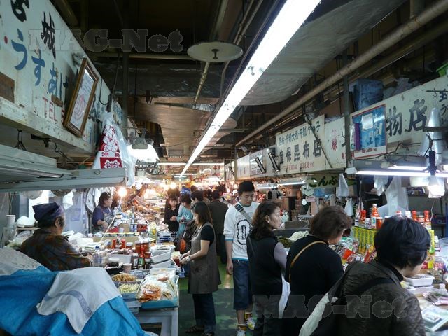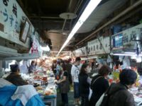 市場は、魚屋を中止とした店が何筋も並んでします。