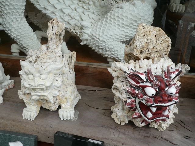 あいにく壺屋焼物博物館は休館日だったのですが、途中のごく普通の店先でサンゴで作ったシーサといった沖縄しかない芸術品を見ることができました。