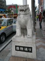 県庁前の通りの入り口には、シーサがしっかり門番をしています。