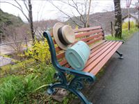 牧野富太郎がすぐ近くで標本採取をしているかの如く、ベンチには帽子と標本箱が置かれています。