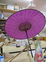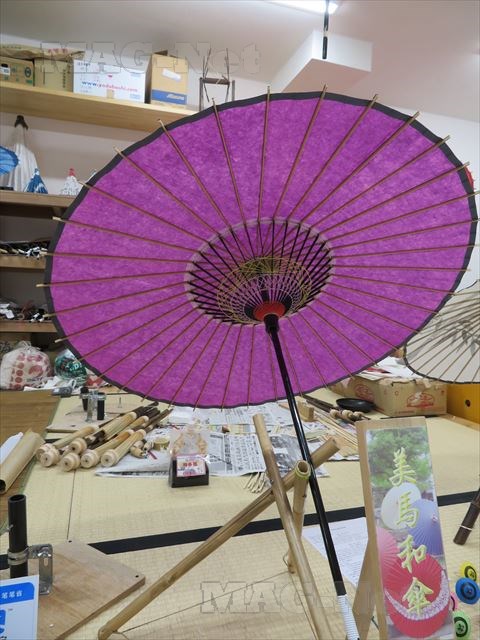 木造の和洋折衷建築で、中に入るとそこでは和傘の制作実演が行われていました。