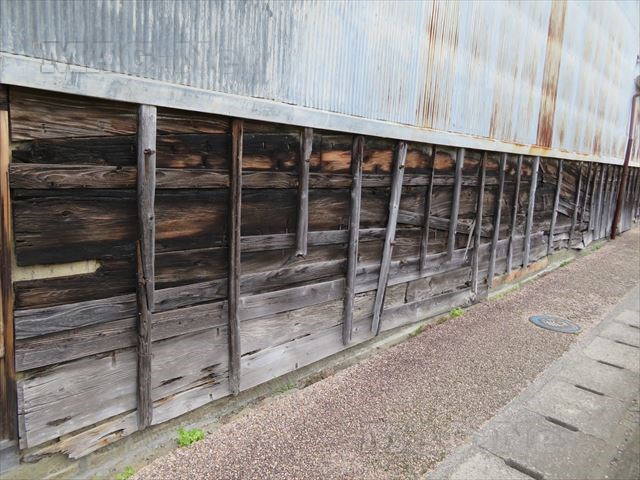 家の横に入り壁に張られている板を見ると、四角い板ではありません。