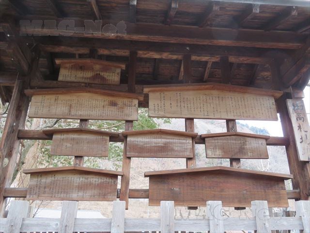 坂の途中には「高札場」があり、「定」と書かれた掟の木札が掲げられています。