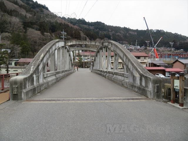 初代の「大手橋」は江戸時代の木曽代官所の設置時に架橋された橋ですが、現在のものは1936年に架け替えられたコンクリート製の端です。