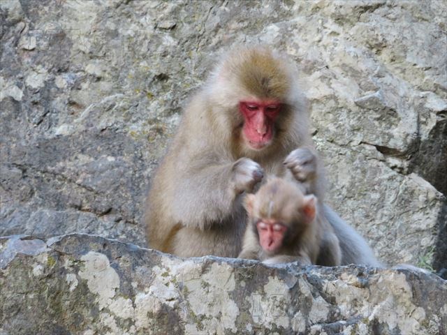 互いに毛づくろいをするもの、子猿をあやしている親猿、のんびり寝そべっているものなど、人間の生活と同じです。