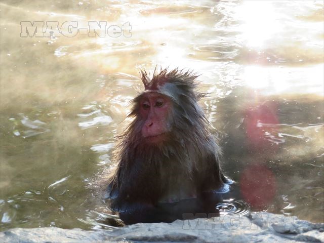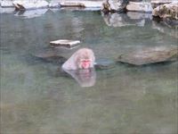 季節は秋で、まだ猿も好んで温泉に浸かる時期ではなかったのですが、1匹の猿だけが温泉を楽しんでいました。
