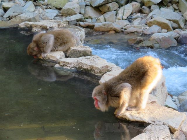 温泉以外にも川辺に繰り出している猿もいます。