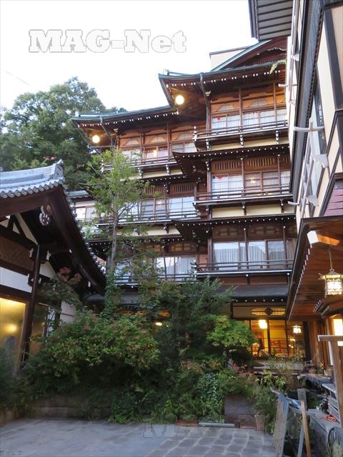 「渋湯神社」から歩いてわずかなところに、「金具屋」という旅館があります。