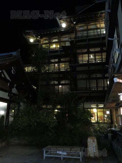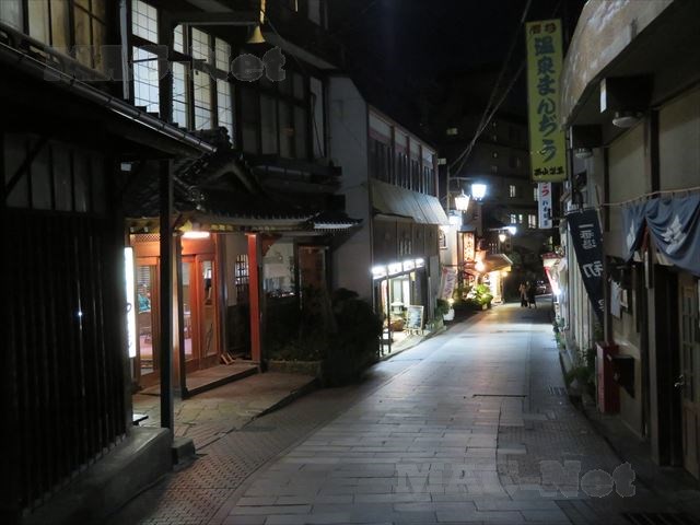 すっかり陽が落ちて、温泉街も闇の中に呑まれていきます。