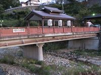 横湯川に架かる橋には「渋温泉」の提灯がかかり、温泉地であることが判ります。