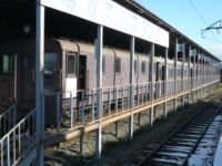 日立製作所製の電気機関車であるED5002、汽車会社製の電車デハニ201、車体全体のボルトの凸凹がある川崎造船製の電車デハ354、日本車輌製の電車モハ1005が、ひっそりと身を横たえています。