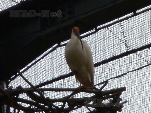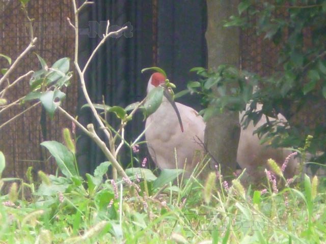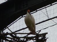 ユニークなマスコットを眺めていると、朱鷺が檻の前面に出て来ているので今なら見ることができるとの情報で、大型の飼育ゲージに向かいます。