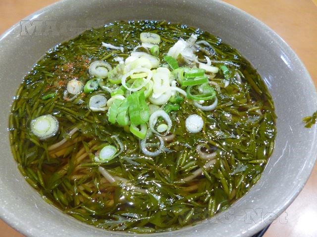 ながもと呼ばれる佐渡独特の海藻が入った蕎麦です。
