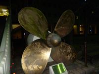 フェリー乗り場に到着した時も夜は明けておらず、真っ暗の中スクリューの展示を見て、佐渡汽船の搭乗口であることを確認します。