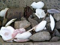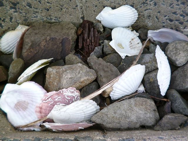 浜には打ち寄せられたホタテの貝殻が並んでいます。