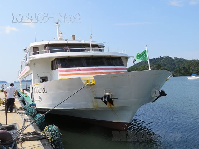 松島湾を巡る遊覧船は、ガラス張りの客室のなかに入ると冷房が効いており、外の暑さを忘れさせてくれます。